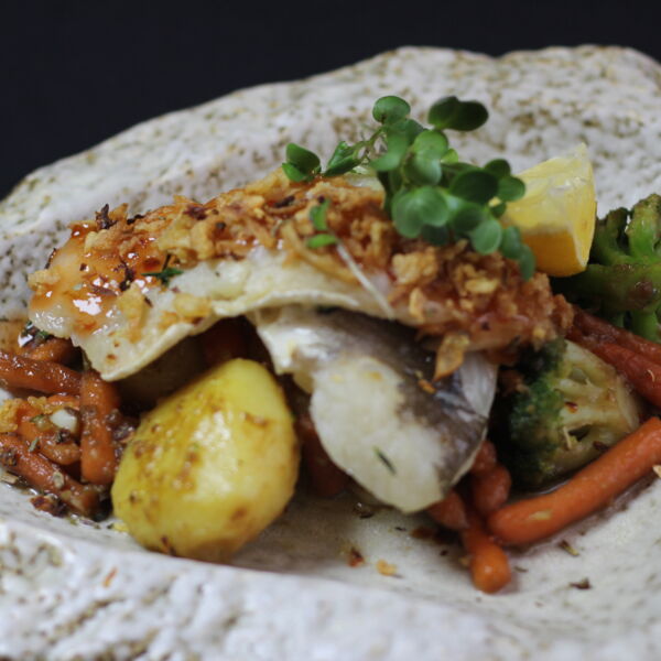 грильована чіабата з вершковим курчам з овочами